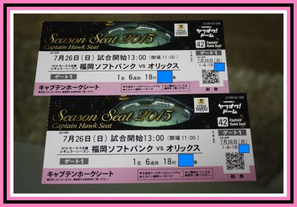 鷹の祭典 7 26 日 キャプテンホークシート ペアチケット 福岡ヤフオク ドーム 売買されたオークション情報 Yahooの商品情報をアーカイブ公開 オークファン Aucfan Com